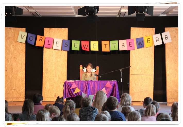 heute, am 22.05.2025, fand bei uns der Vorlesewettbewerb statt. Je zwei Kinder aus den Klassen 2 bis 4 wurden in klasseninternen Wettbewerben ausgewählt und lasen nun allen Grundschulkindern vor. Zunächst wurde ein vorbereiteter Text gelesen und anschließend ein per Zufall gezogener Text aus dem Buch „Petronella Apfelmus“, der allen Vorlesern unbekannt war.